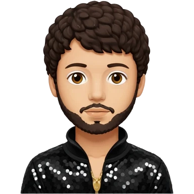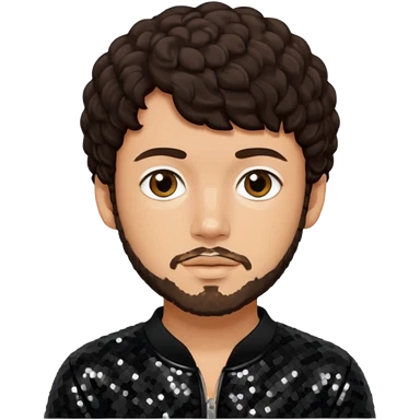 Jack Harlow with dark brown hair and short beard, black sequin outfit emoji