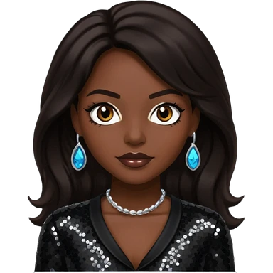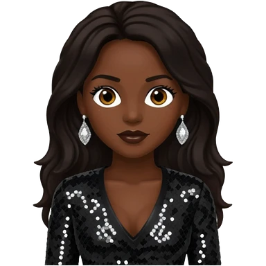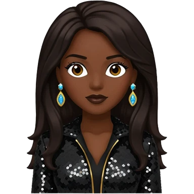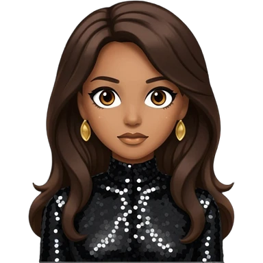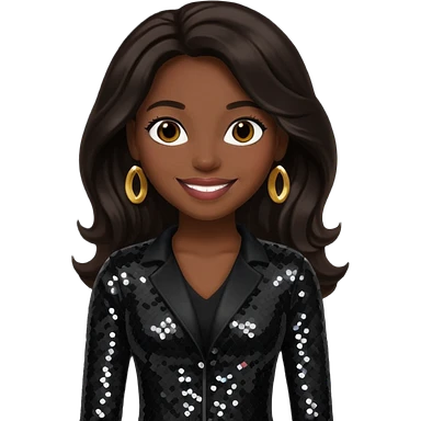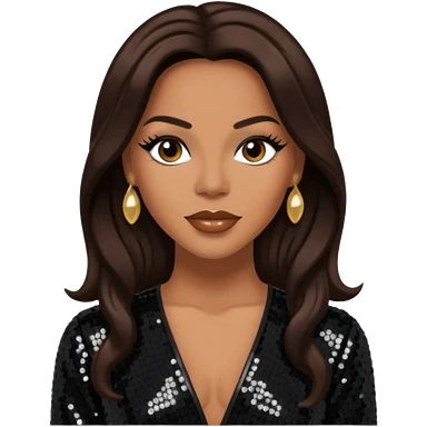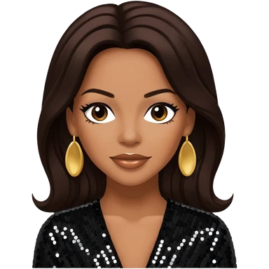 Cindy Herron from En Vogue with long dark brown hair, black sequin outfit emoji
