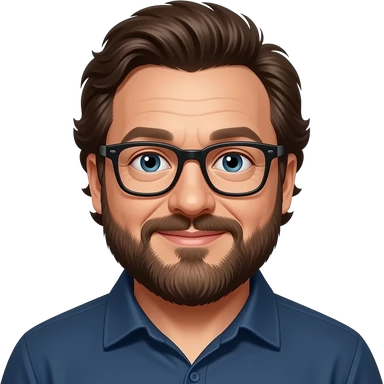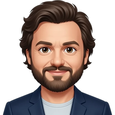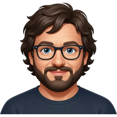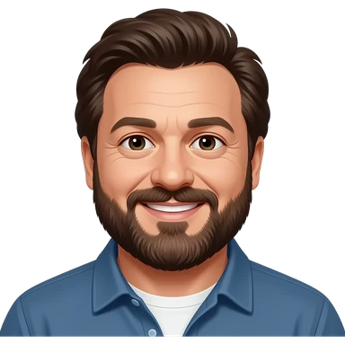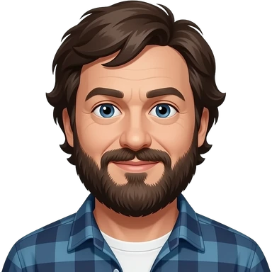 a developer, polish, very tall, big guy , always in good mood, often wearing lumber jack shirt, has some French beard, a white small dog, really into sailing emoji