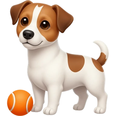 Jack russel terrier dog with a red leash and a green tennis ball emoji