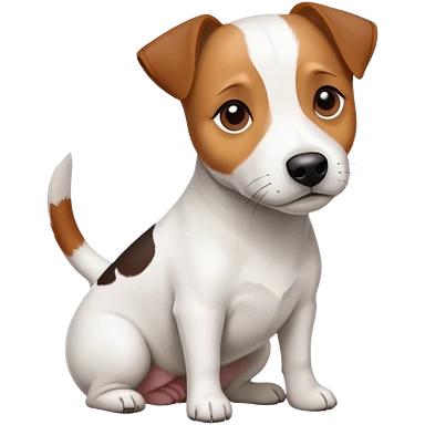 Jack Russell terrier brown spot on left eye/ ear and white the rest of the body as Jedi emoji