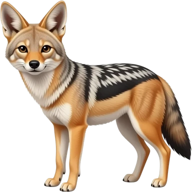 An emoji of a jackal, with a sleek, slender body and pointed ears. Its fur is a mix of tan and gray, with sharp, observant eyes. It has a cunning, alert expression, symbolizing intelligence and adaptability emoji