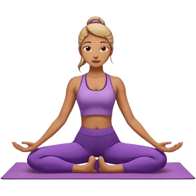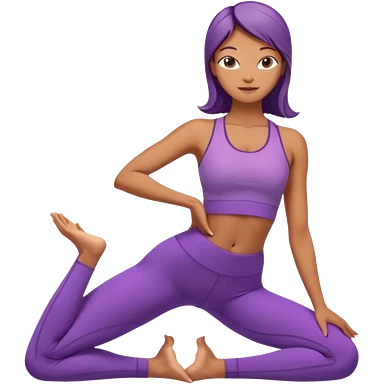 A woman in purple yoga clothes seated and bending forward to touch her toes, calm minimalist art style. emoji