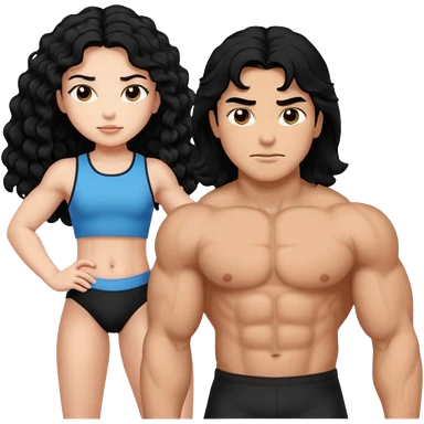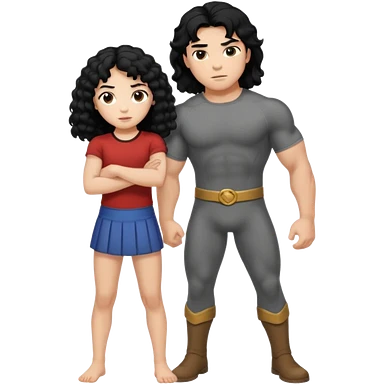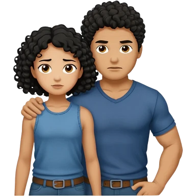 A strong man with straight black hair protecting a shorter girl with long curly black hair emoji