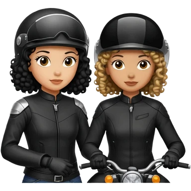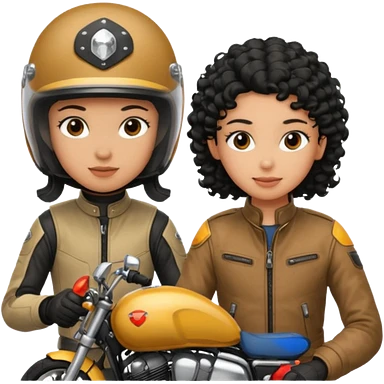 A motorcyclist and a shorter girl with curly black hair, facing each other. emoji