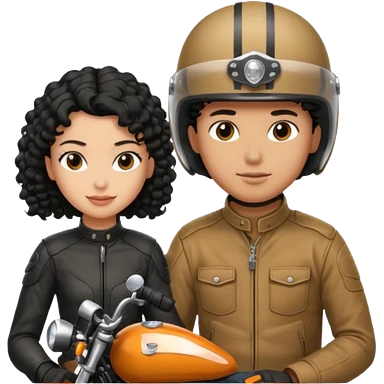 A man motorcyclist and a shorter girl with curly black hair, facing each other. emoji