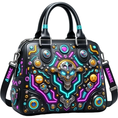 Unrealistic Alexander Wang bag, in an futuristic cyberpunk style with different neon and black colors, highly detailed embellishments, 8k hd quailty, high definition. Must have no emoji faces, no emoji icons, must be isolated, 3d rendering. emoji