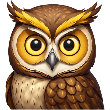 Owl – Wise-looking owl with large eyes, perched calmly emoji