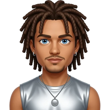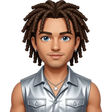 Jacob Underwood from O-Town with blue eyes, brown 2000s dreads, silver metallic sleeveless shirt, necklace and earrings emoji