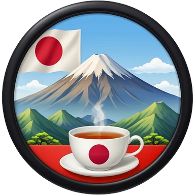 TEA WITH JAPAN MOUNTIAN AND FLAG IN BACKGROUND emoji