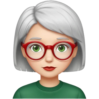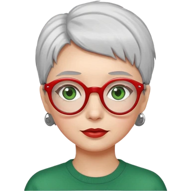 visage femme a lunettes pas épaisse ronde rouge avec cheveux courts gris-blancs aux yeux verts emoji