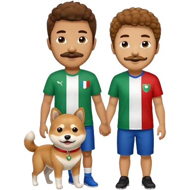 Italy flag shirt boy with mustache beard brown curly hair next to Shiba Inu emoji