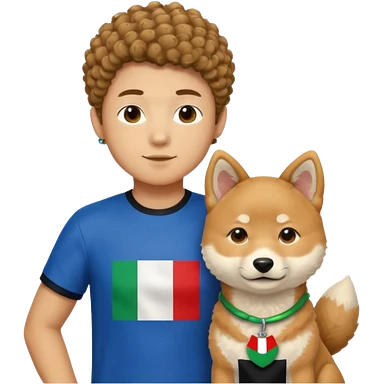 Italy flag shirt boy curly hair next to Shiba Inu emoji