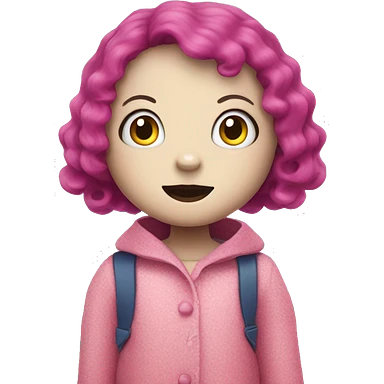 a girl that looks like coraline holding her neck and strangling herself emoji