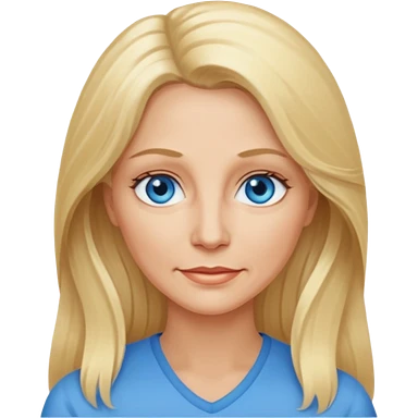 Woman 50 yrs light brown long wavy hair blue green eyes l emoji