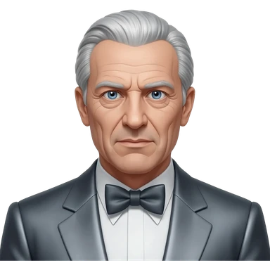 Ernst Stavro Blofeld from James Bond series with blue eyes, silver hair, charcoal grey metallic suit with bow tie emoji