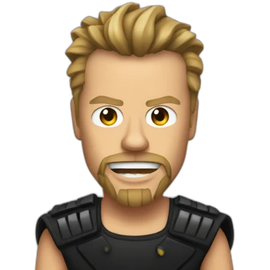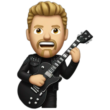 James Hetfield with blue eyes, golden brown hair, black metallic shirt, black metallic baggy pants, silver necklace emoji