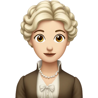 Jane Austen inspired brunette character reading a book with a teacup nearby, emoji style emoji