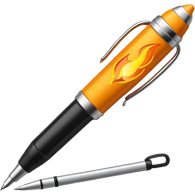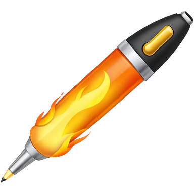 a pen, with a fire coming out of the ballpoint writing end of it emoji