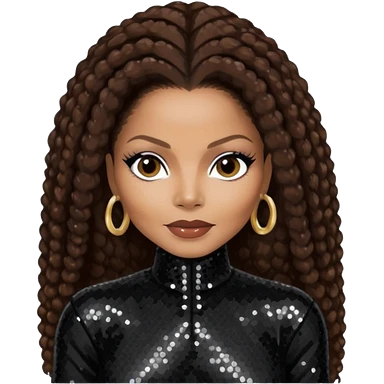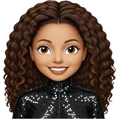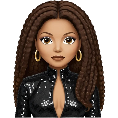 Janet Jackson with dark brown hair, black sequin outfit emoji