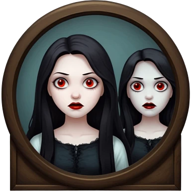 Spooky killer on mask on fancy mirror behind woman emoji