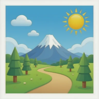 Japan snowy mountains with trees and water emoji