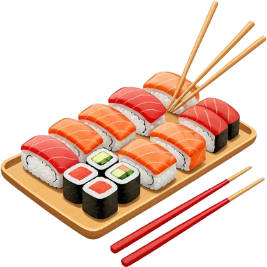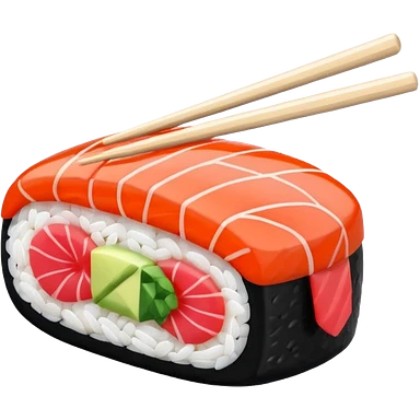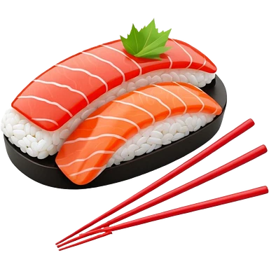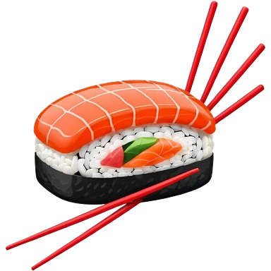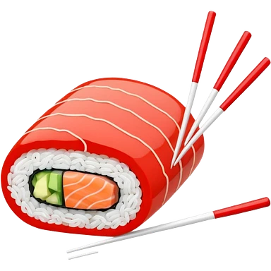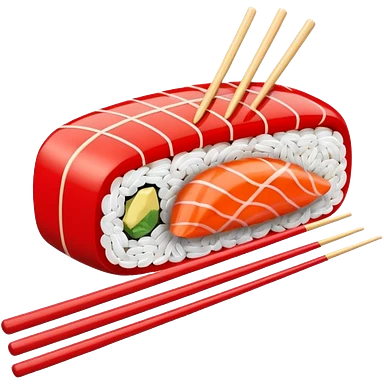 Japanese cuisine humanless avatar in minimalist emoji-style illustration. Sushi and chopsticks, clean lines, red white colors, flat design, calm and modern. emoji