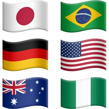 Japan, Brazil, Germany, United States, Australia, Nigeria all wrapped in pink and white emoji