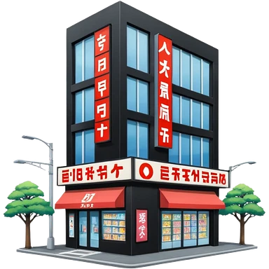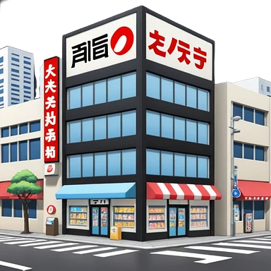 japanese anime store in modern style like in Akihabara with anime girl on a building emoji
