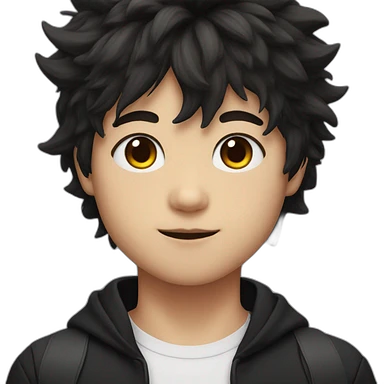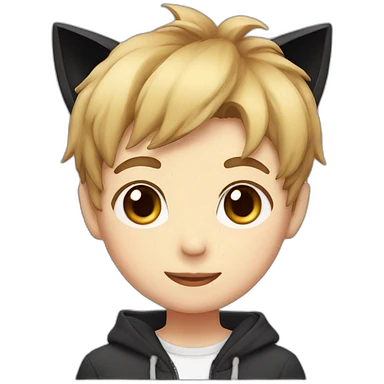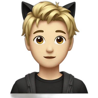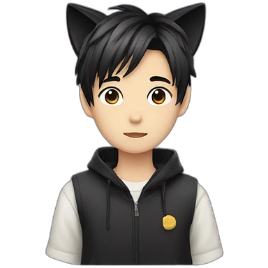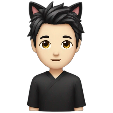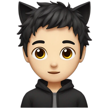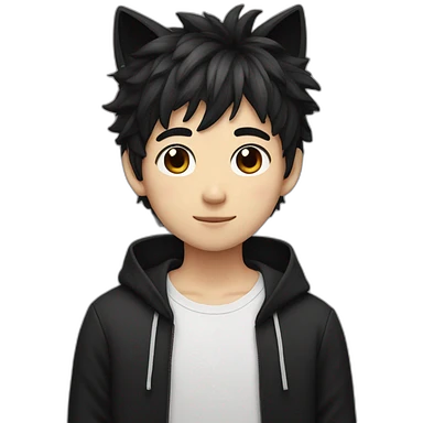 Japanese boy, with black cat ears and cute fluffy hair in black emoji