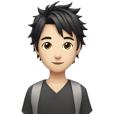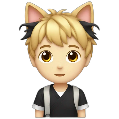 Japanese boy, with black cat ears and a cute hair style in black emoji