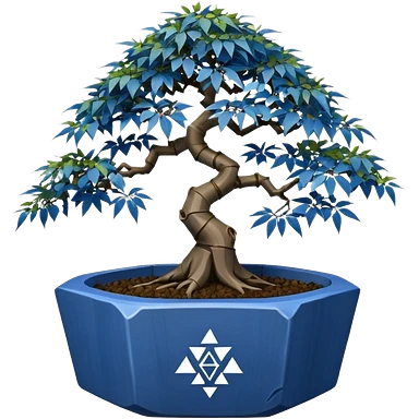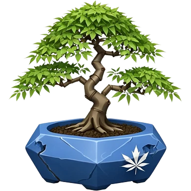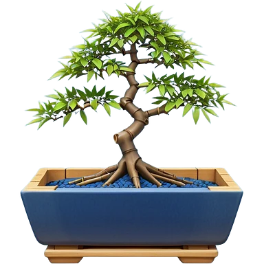 Japanese broken egg-shaped shallow dark bamboo blue maple tree bonsai pot emoji | AI Emoji Generator