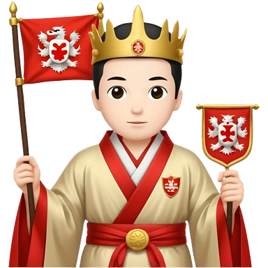 Japanese Castle Lord, Lord standing before a Japanese castle backdrop, holding a banner with family crest. emoji