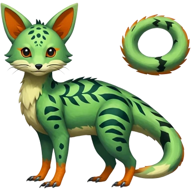 Japanese oriental asian painted Greenish beautiful handsome gorgeous aesthetic colorful vibrant Vernid-Trico-species-Fakemon-creature by LiLaiRa, 4 legs, 1 tail, random markings, (full body) emoji