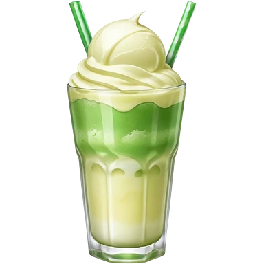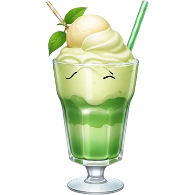 Japanese cream soda green on a glass with ice and vanilla 1 scoop on top emoji