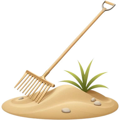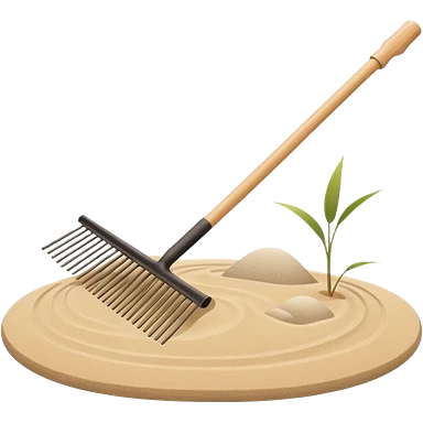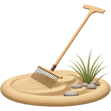 Minimalist emoji of a Japanese zen garden rake, elegant thin lines, light wood tone, sand-beige palette, flat vector style, calm and balanced aesthetic, inspired by zen tranquility, transparent background, premium minimal design emoji