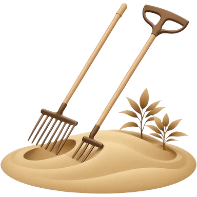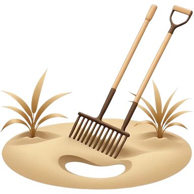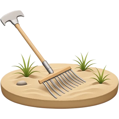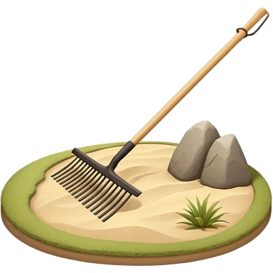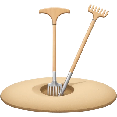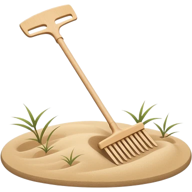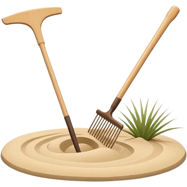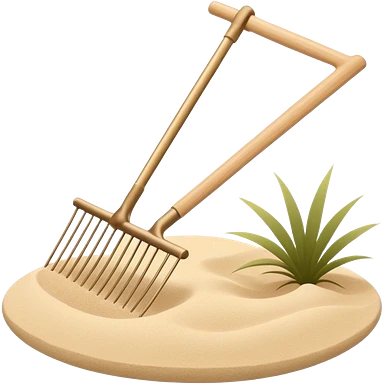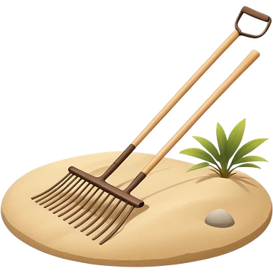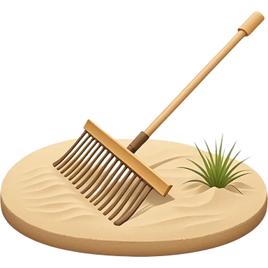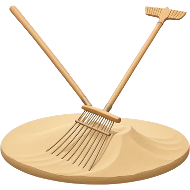 Minimalist emoji of a traditional Japanese zen garden rake (kumade) thin and balanced lines, natural light wood texture, soft sand-beige and warm neutral tones, flat vector style with subtle depth, centered composition, transparent background emoji