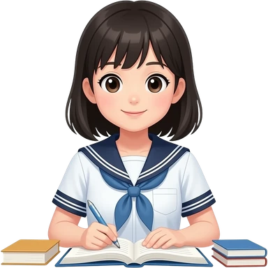 japanese school girl writing diary emoji