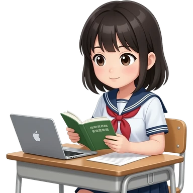 Japanese school girl studying for Certification emoji