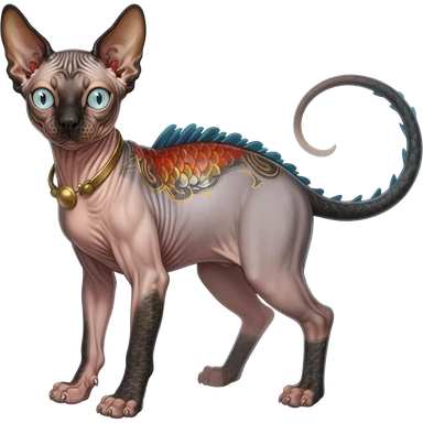 Japanese oriental Asian Edgy badass swimmy wet painted intricate ornate Japanese Asian koi-Minccino-Lykoi-Emolga-Sphynx-Linoone-Zangoose-fusion-hybrid-animal-Fakémon-creature, full body, thin long sleek scaly tail, intricate markings emoji