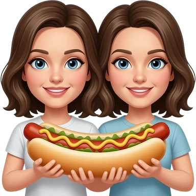 Female Doublemint twins twinning with hot dogs emoji