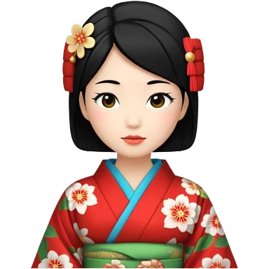Geisha con kimono rojo. ojos verdes. haciendo ceremonia del té en casa tradicional japonesa emoji