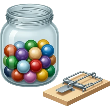 Jar with marbles, lego, and mousetrap in emoji