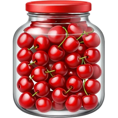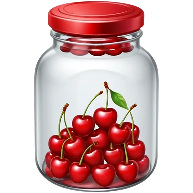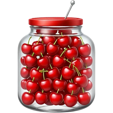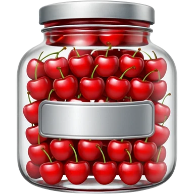 Realistic glass jar with silver metallic lid filled with maraschino cherries inside of it. emoji