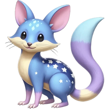 Nebula Celestial Lunar Starry Galactical Stellar Buizel-Minccino-Purrloin-Cresselia-Numbat-Bilby-Quoll-Meowstic-hybrid-fusion-creature (full body) emoji