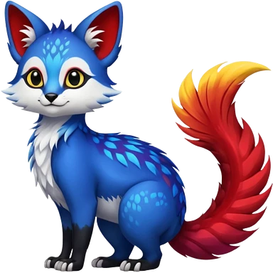 Feral Rare Fantasy vibrant tropical exotic cobalt-blue-crimson-red-black-white-yellow-gradients, Vernid-Trico-species-creature by LiLaiRa, random markings, tufted tail, tufted ears, full body emoji