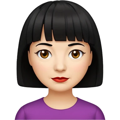 Illustrated emoji of a middle aged woman with short black hair and bangs, white skin and dark eyes emoji