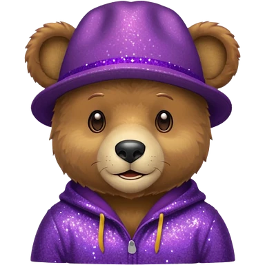 Urso adulto com boné roxo com glitter emoji
