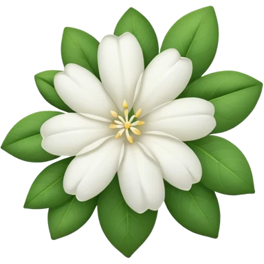 Syrian jasmine flower with delicate white petals and green leaves, elegant emoji