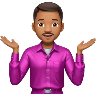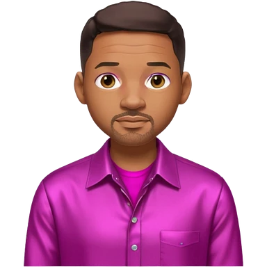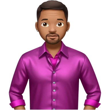 Will Smith with dark brown hair, metallic fuchsia dress shirt, metallic white pants emoji